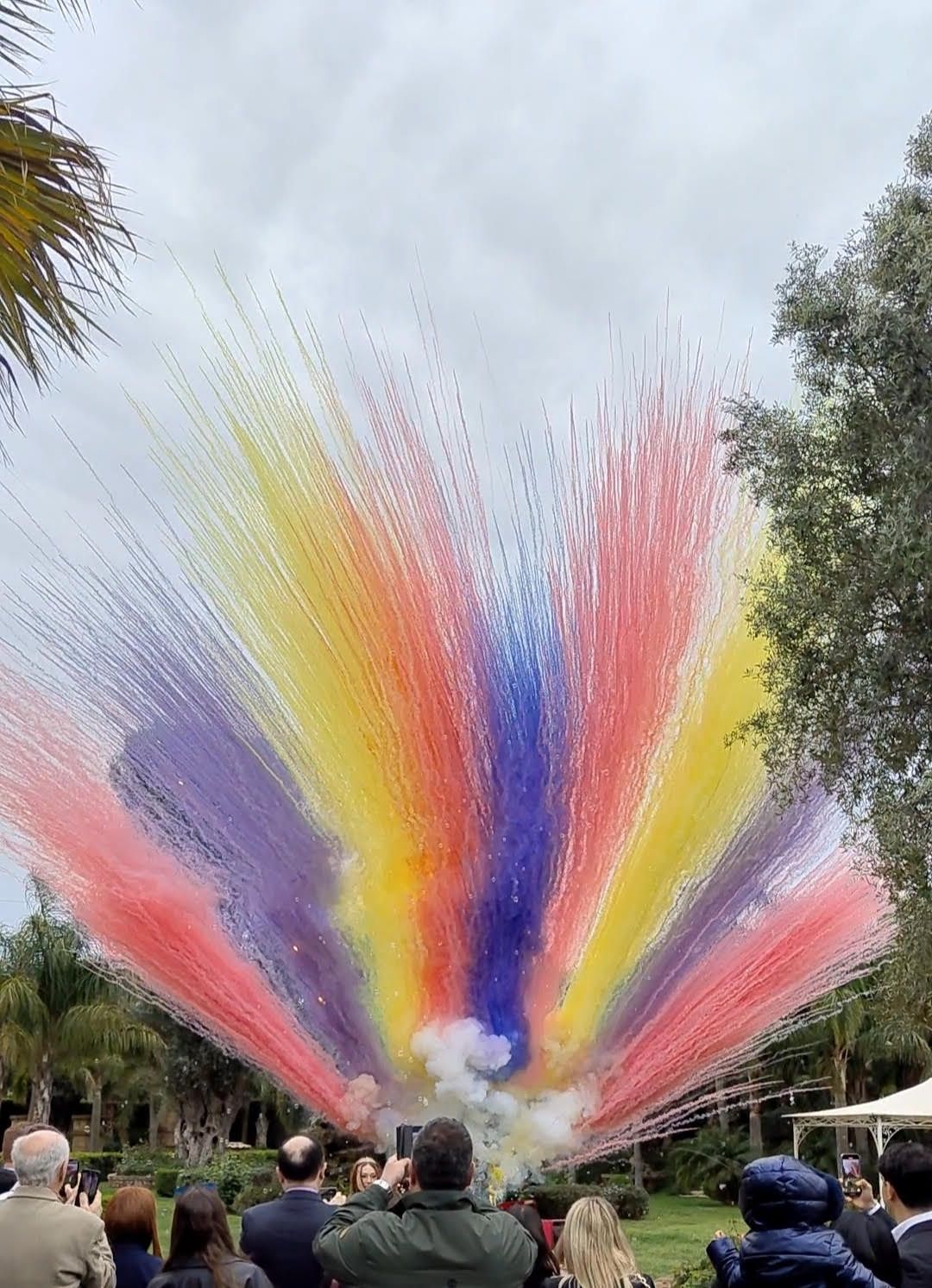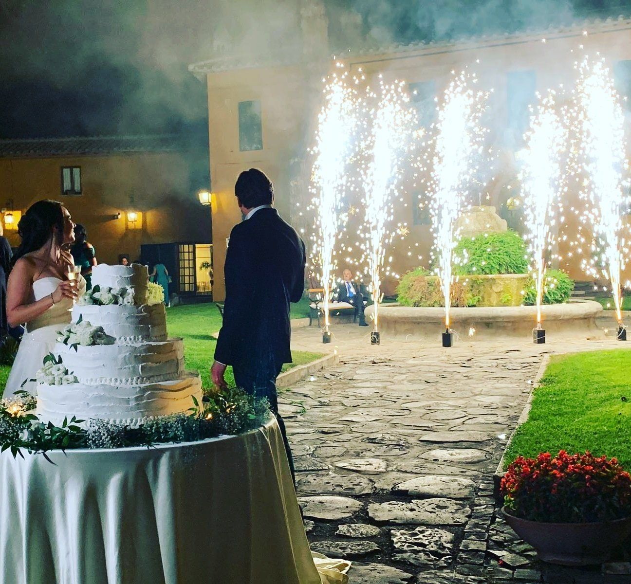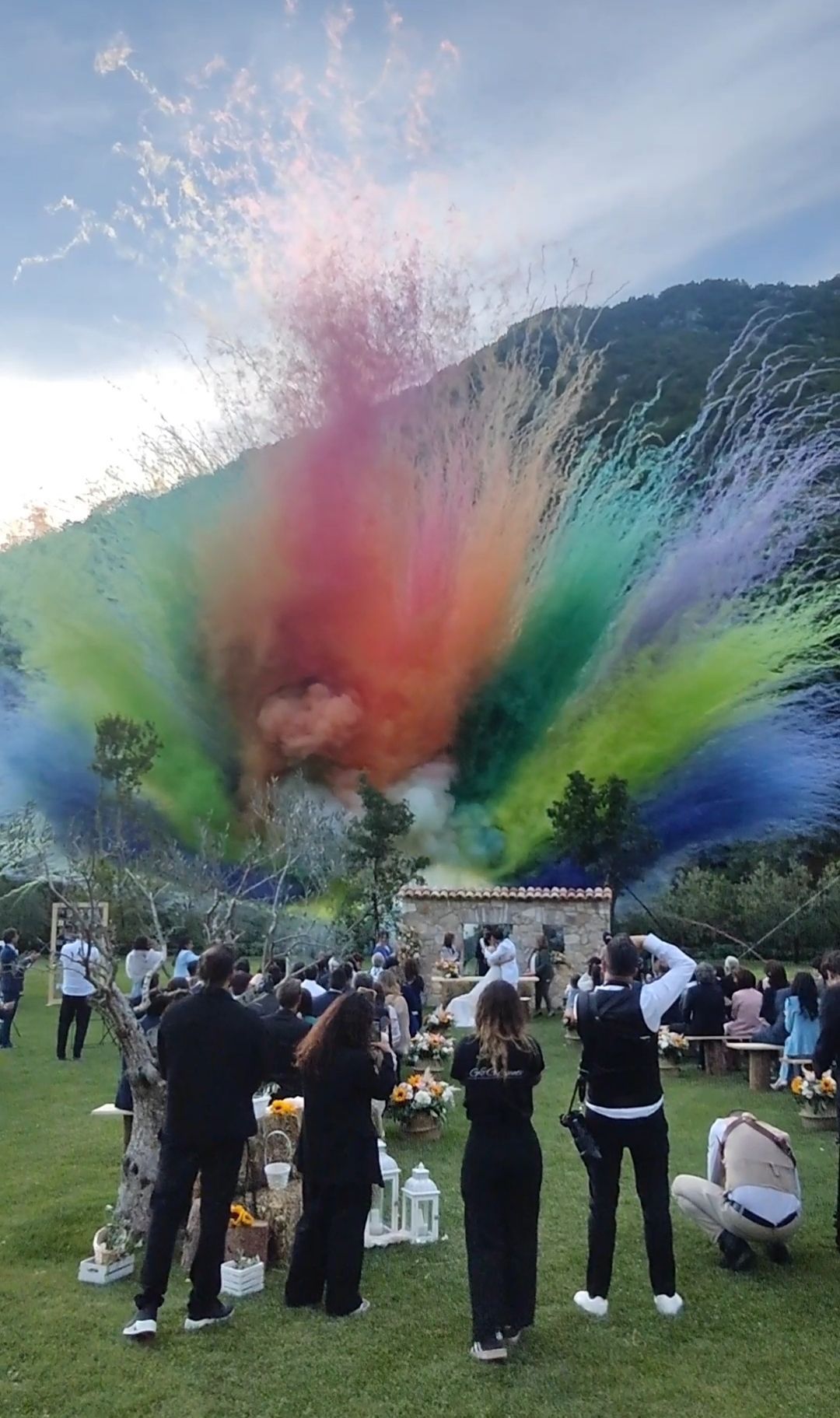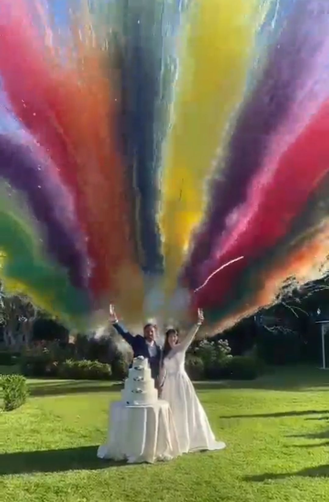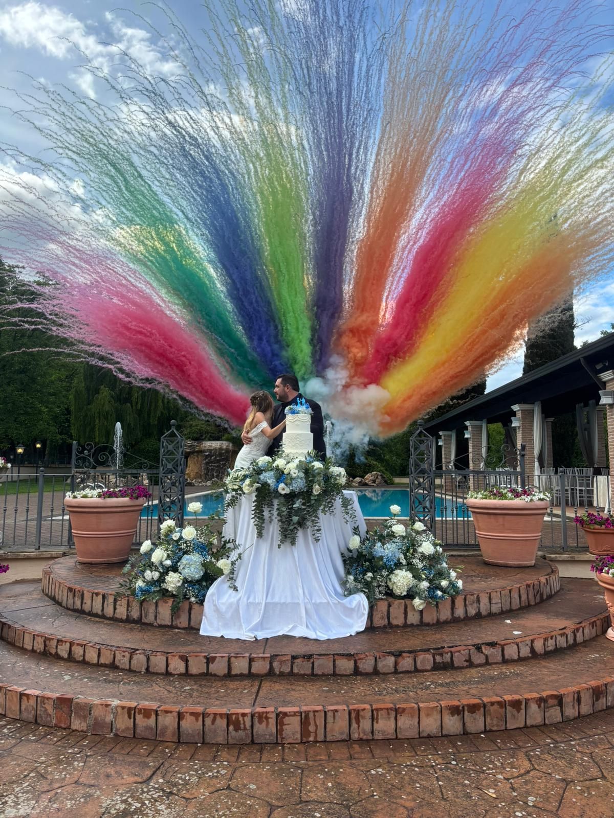 Effetto di sbruffi a fumate colorate per un sorprendente taglio torta di giorno o sera.